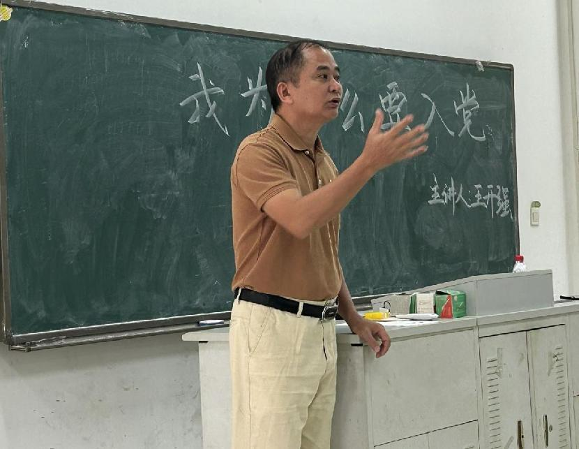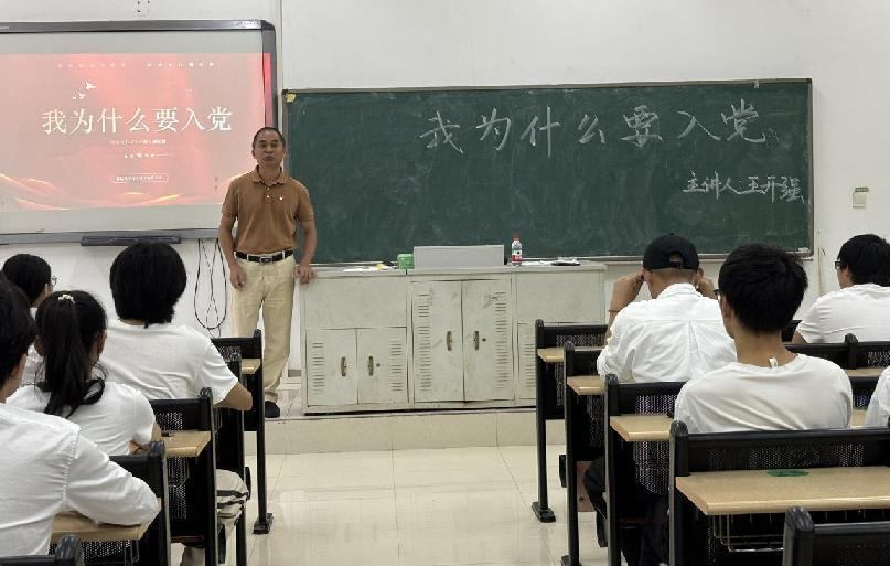 10月27日上午,王开强书记以《为什么要入党》为主题,从中国近代史的时间脉络介绍了中国共产党诞生以及成长的艰辛、先烈付出的血泪,启发同学们感党恩,明白今日之盛世是先辈们艰苦奋斗,不懈努力创造的。最后,引用习近平总书记在党的二十大的报告指出广大青少年要坚定不移听党话、跟党走、怀抱梦想又脚踏实地,敢想敢为又善作善成,立志做有理想、敢担当、能吃苦、肯奋斗的新时代好青年,让青春在中国设现代化建设中绽放绚丽之花。向在场所有入党积极分子诠释了入党是为了投身于伟大事业,给大家上了一场精彩的党课。
