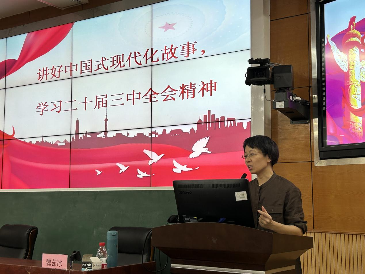 10月27日下午,明陞m88官方网站邀请到公司理论宣讲团魏茹冰老师,在3208教室向全院师生党员、发展对象、入党积极分子宣讲党的二十届三中全会内容。魏老师从全会审议通过《中共中央关于进一步全面深化改革、推进中国式现代化的决定》出发,深入讲解了近现代中国的发展变化,再讲到党的二十届三中全会精神要求——进一步全面深化改革、推进中国式现代化,站在新的历史起点上,科学谋划进一步全面深化改革。党的十八届三中全会以来全面深化改革的实践续篇,从深刻认识党的二十届二中全会以来党和国家事业取得的重大成就,到中国如今面临的全球性问题种类繁多变化多端,依旧坚持人类命运共同体。魏老师的宣讲犹如一盏明灯使我们对全会精神有了更全面、深入的理解和认识,也为大家今后的学习工作指明了方向。