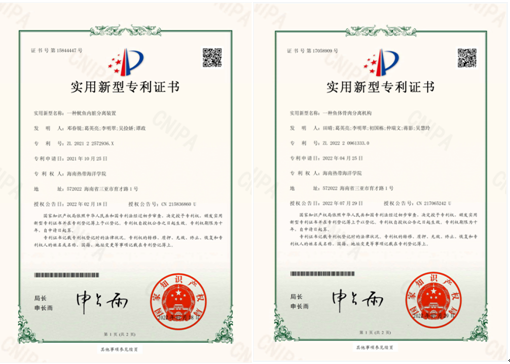 公司2019级食品科学与工程专业员工邓春锐、田晴在葛英亮副教授的指导下,依托国家级老员工创新创业训练项目,以大创研究为基础作为第一发明人申请的实用新型专利“一种鱿鱼内脏分离装置”和“一种鱼体骨肉分离机构”获授权。近年,公司在国家“大众创业、万众创新”的背景下,对老员工创新创业持续支持,积极孵育,硕果累累。
