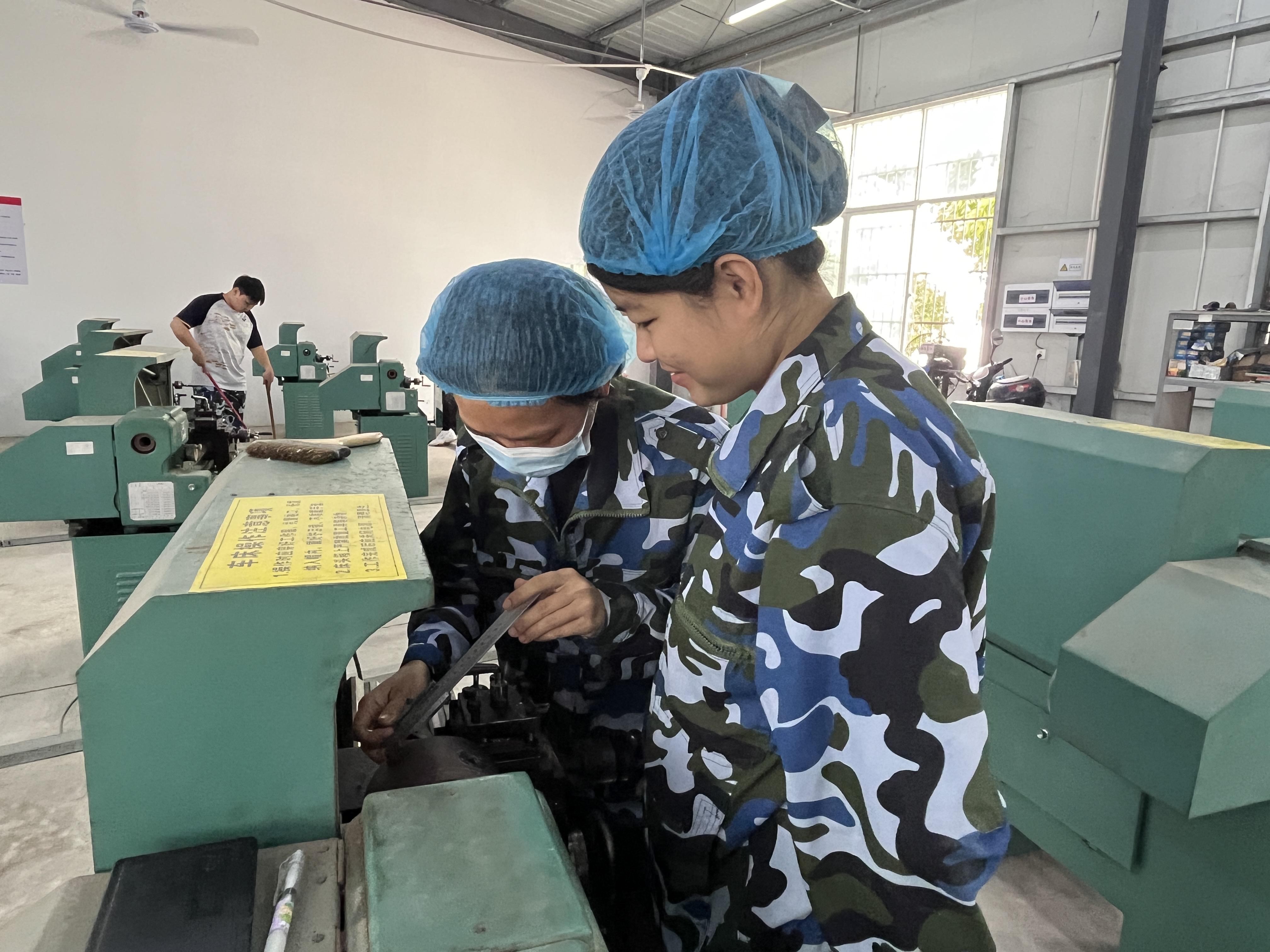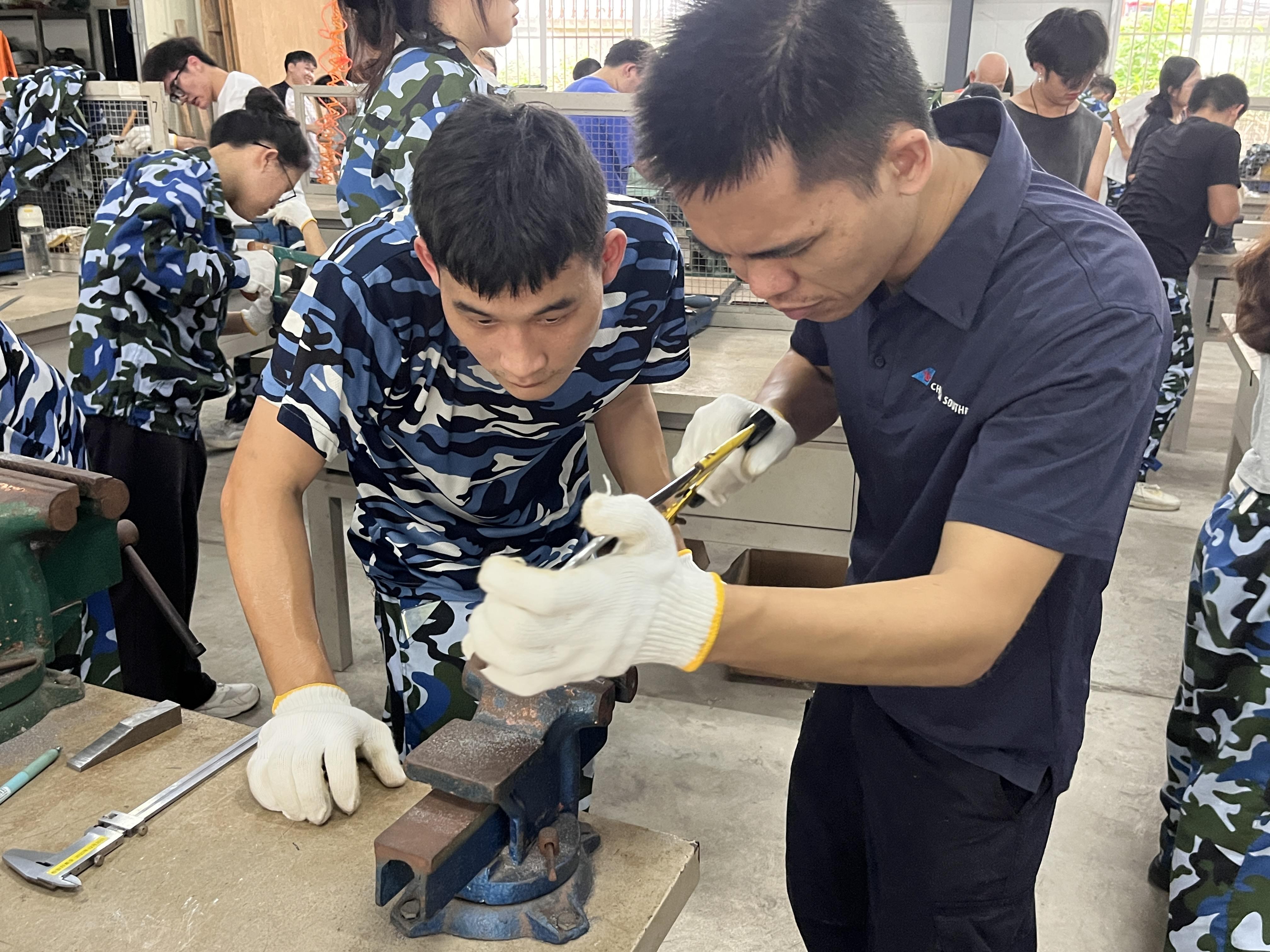 金工老师耐心指导员工进行金工操作