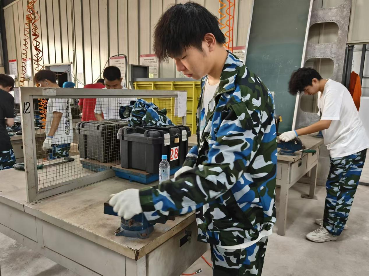 下午,同学们进行了钳工理论学习和操作。老师首先详细讲解了钳工的操作方法和注意事项,同学们则认真听讲,积极提问,课堂氛围热烈。随后,在钳工师傅的带领下,同学们走进工程车间,进行了钳工实操。面对实际操作中的困难,同学们不怕辛苦,不惧挑战,迎难而上,充分展现了出色的实操能力和“不怕苦、能吃苦”的精神。