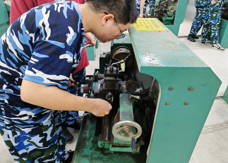 下午,同学们学以致用,开展了金工产品的制作。他们互相探讨着金属切削的操作方法,细心操作。同学们勤学好问,在遇到操作难题时,积极向指导老师探讨解决方法。指导老师在一旁耐心地指导,讲解着操作技巧和注意事项,确保同学们的操作安全和实习质量,展现出良好的师生关系和学习氛围。